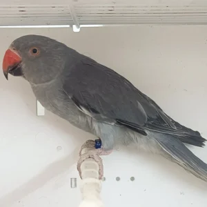 Excellent mimicry; gray feathers with red tail; known for problem-solving |