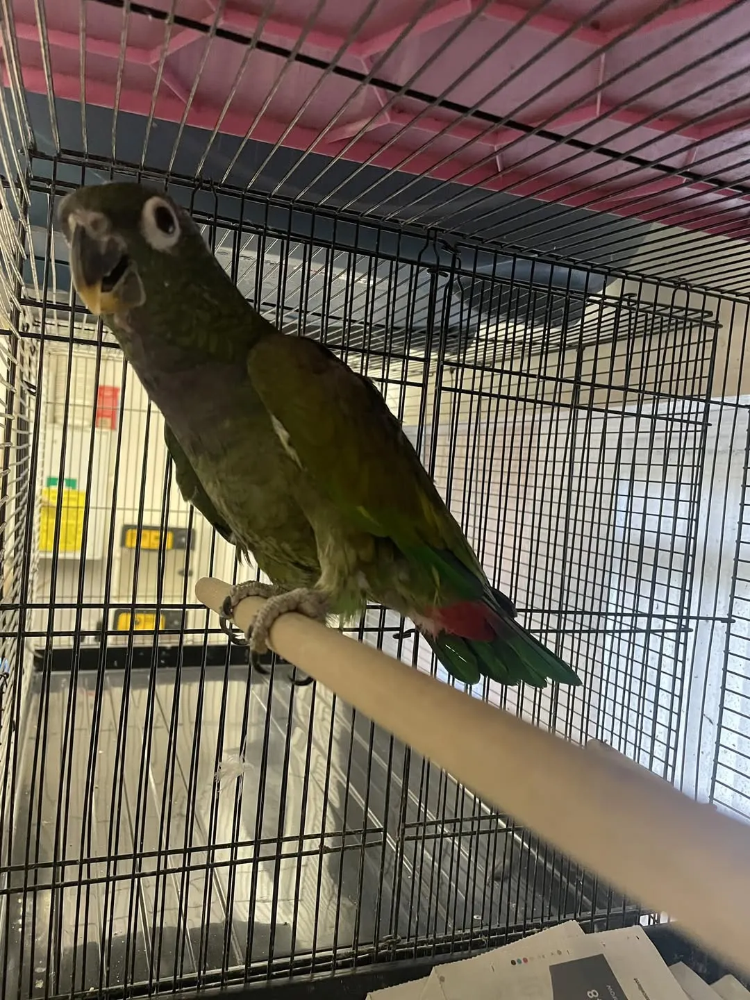 My Maximilian pionus, Luna, is perfect. Smart, playful, and loves interaction. His bare eyes add unique charm.